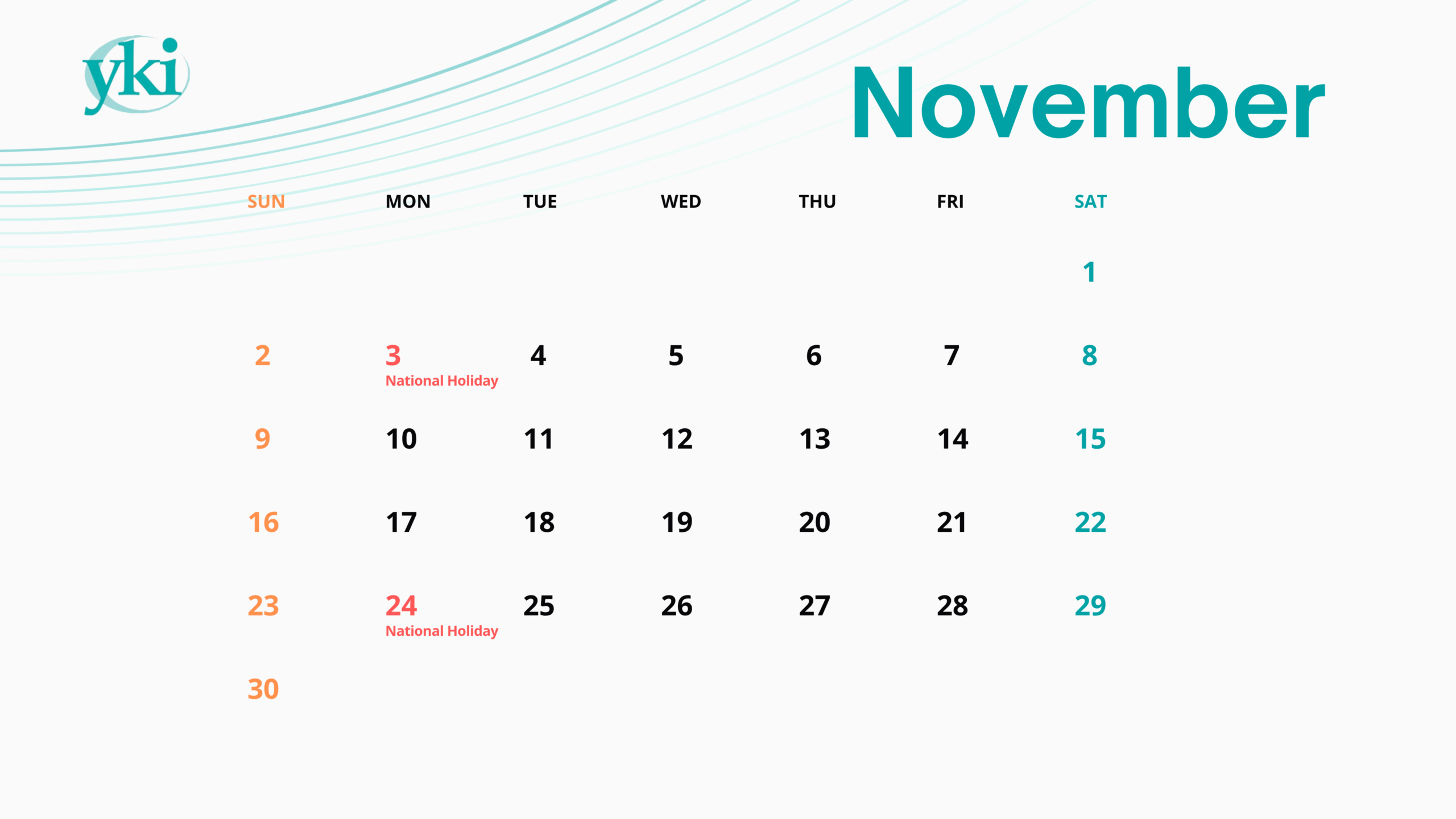 Please note that our office will be closed on the following national holiday(s) in Japan in November 2025: