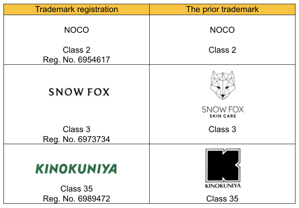Before the law was amended, trademarks that were identical or similar to prior trademarks were not allowed to be registered if they covered the identical or similar goods/services.